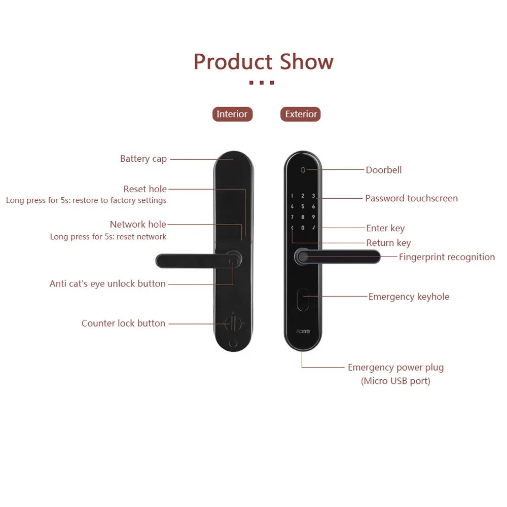 Aqara S2 Smart Door Lock Fingerprint High Recognition Password Key APP Control Smart linkage Home S