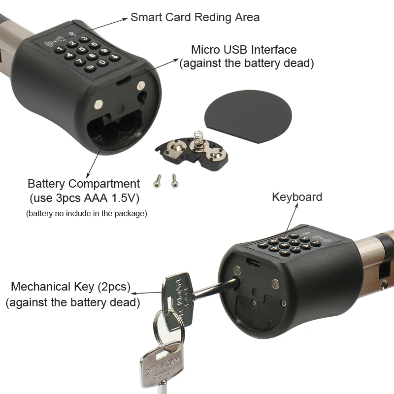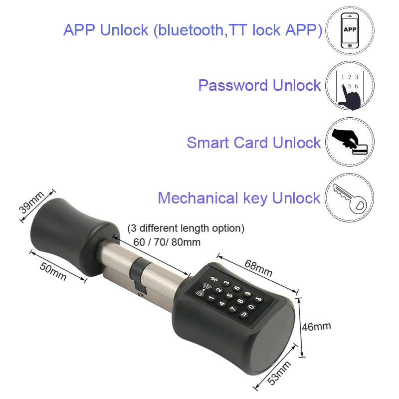 DIY Replacement Smart Door Lock Cylinder Support Mobile Phone APP TT lock Bluetooth 13.56mhz IC Car